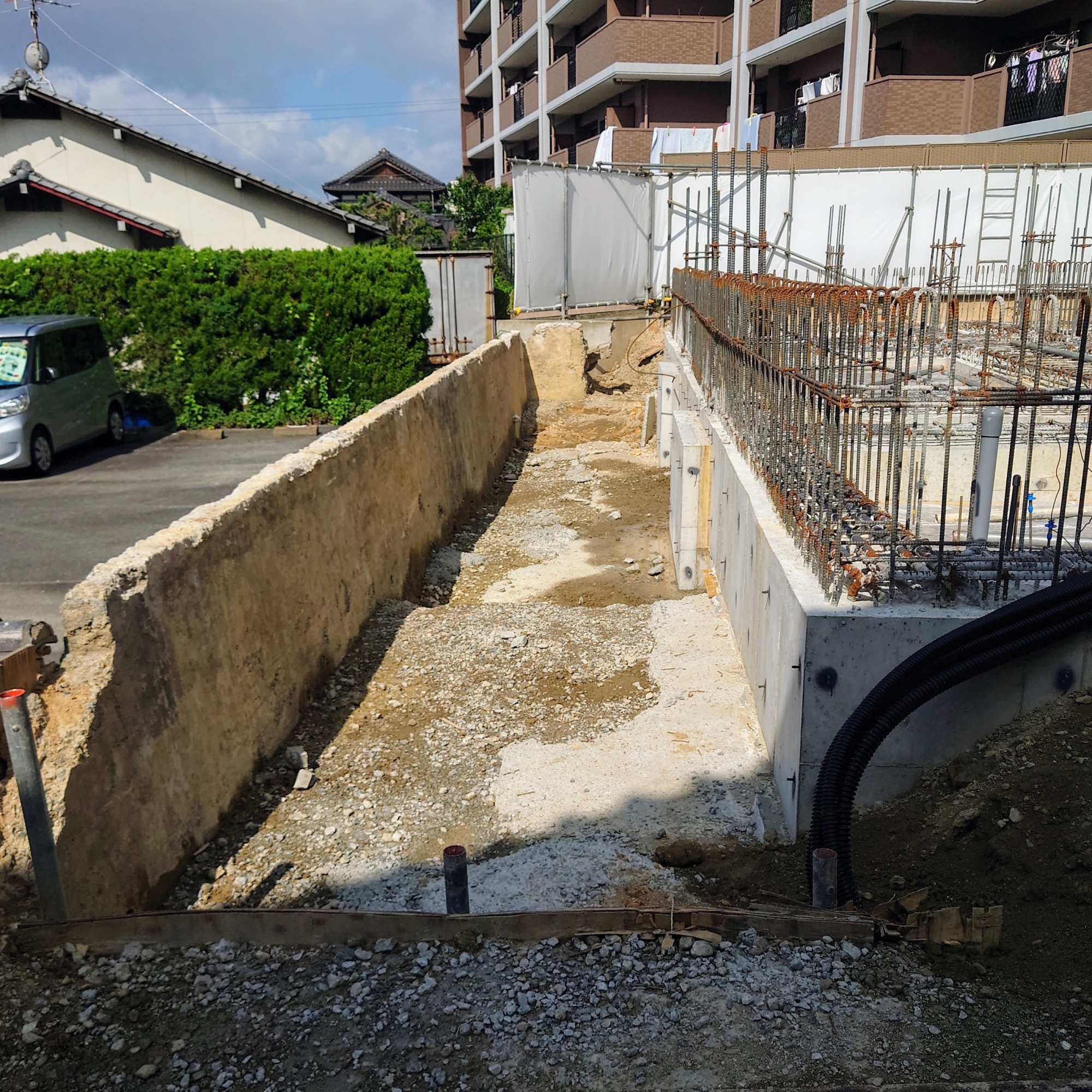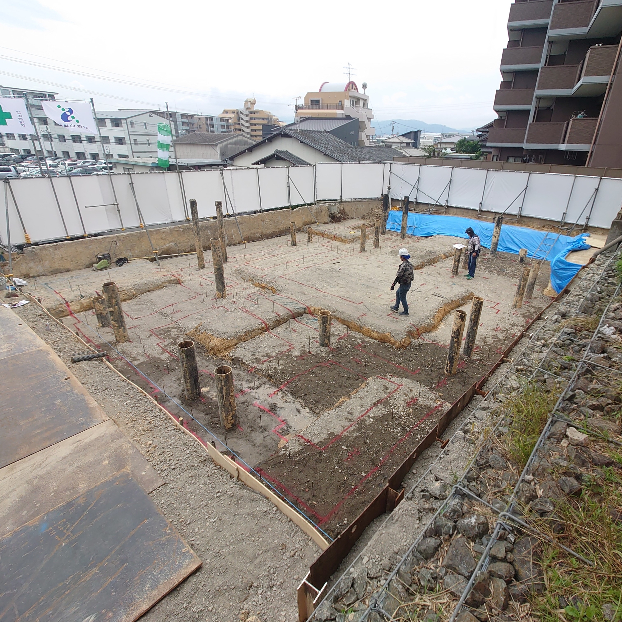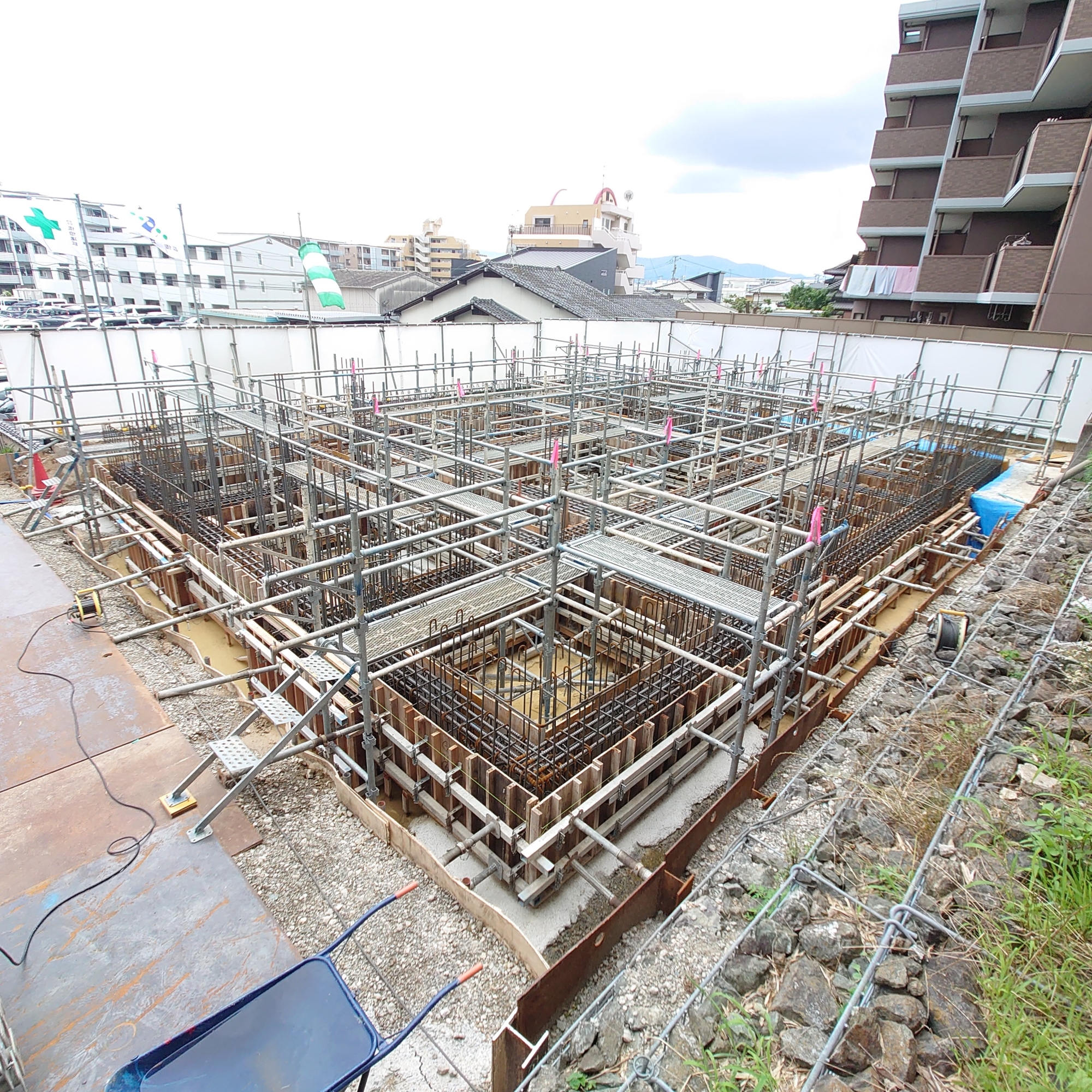 納骨堂再建 進捗状況④ 2023/07/17 納骨堂再建 定点写真です。 6月12日からの経過がわかります。 まだ変化は地味ですが、大事な基礎工事です。 かなりしっかり作っているようです。 これから南側擁壁を新しくしてから、年末にかけて上に上に延びていきますよ。 7-16