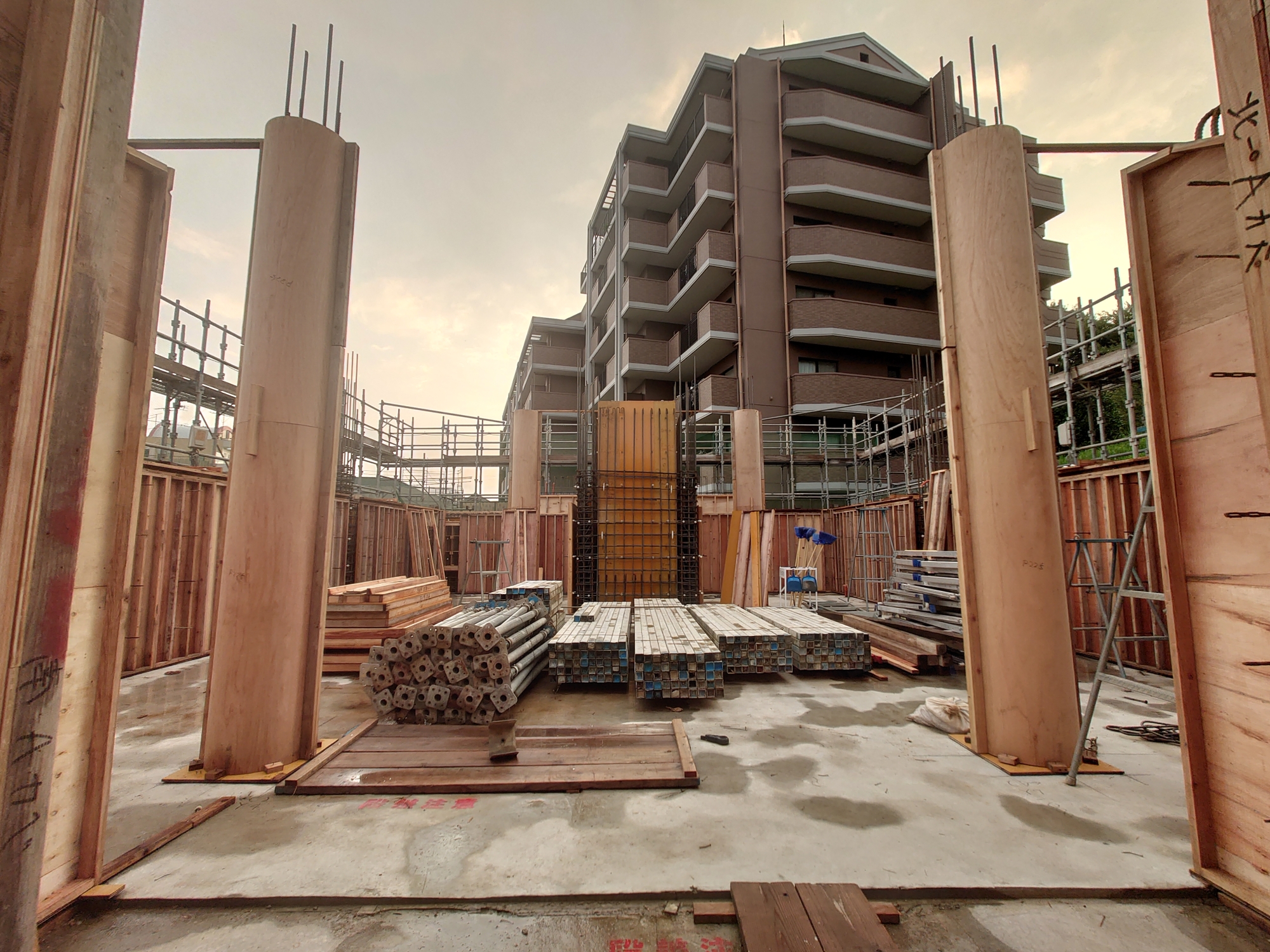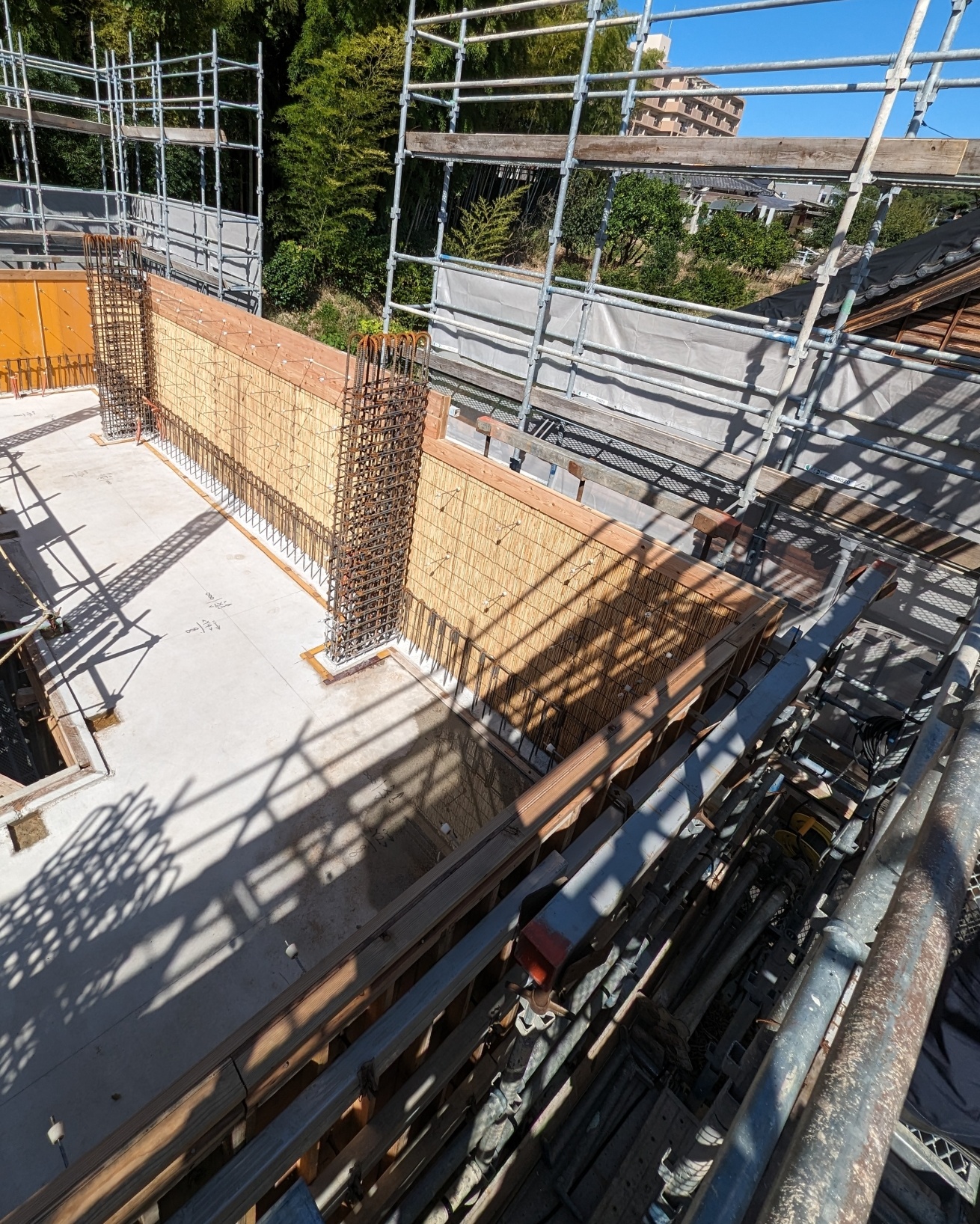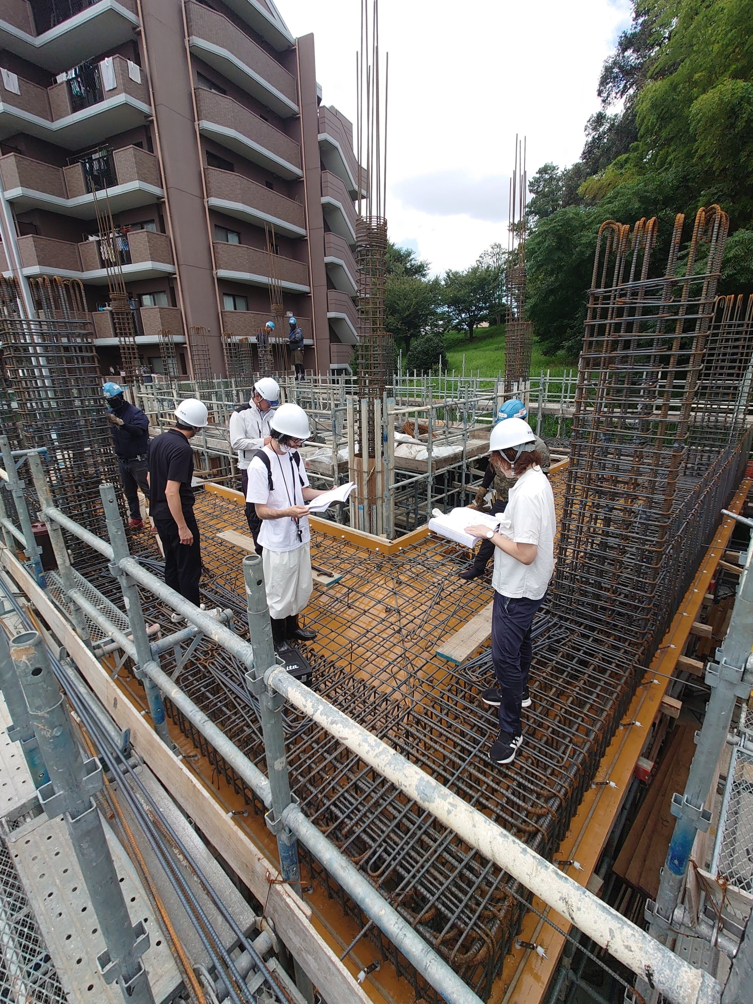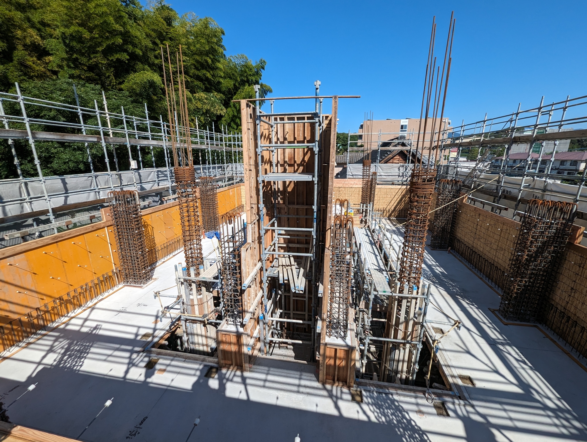 ②③④すぐに足場が積まれ、配筋作業がされた様子です。