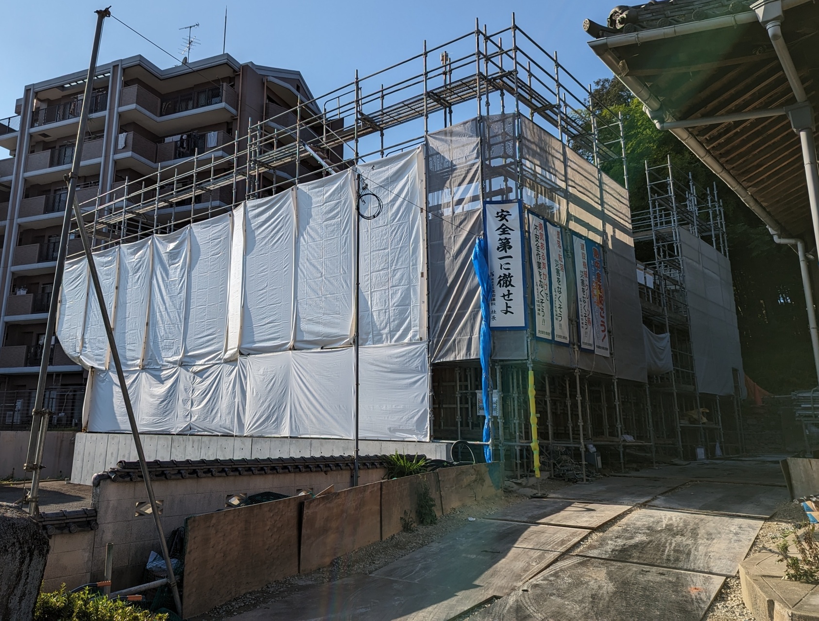 ⑦2階フロア部分の上まで足場が高くなりました。