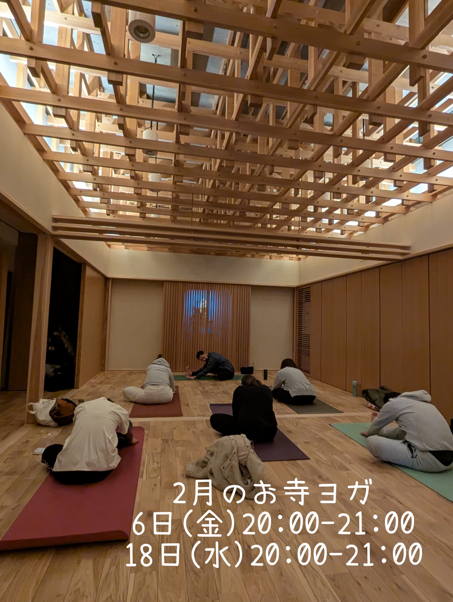 2月のお寺ヨガ 2026/02/05 暖房は入れてますが、寒がりの方はヒーターのお近くにどうぞ。 参加費1000円 インストラクター 川村健二郎先生 持参品 ヨガマット(貸出有り) 飲み物、その他ご自由に 寒がりの方は、ブランケットや暖かいアウターが役に立ちますよ。 お問い合わせはお気軽にどうぞ!